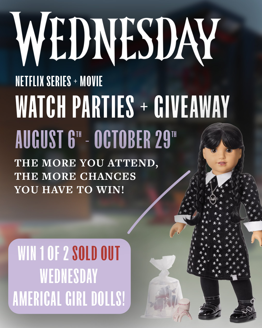 Win 1 of 2 SOLD OUT Wednesday Addams American Girl dolls this Halloween! 🖤 Join us for 13 spooky Wednesdays @ 6PM (Aug 6–Oct 29) […]